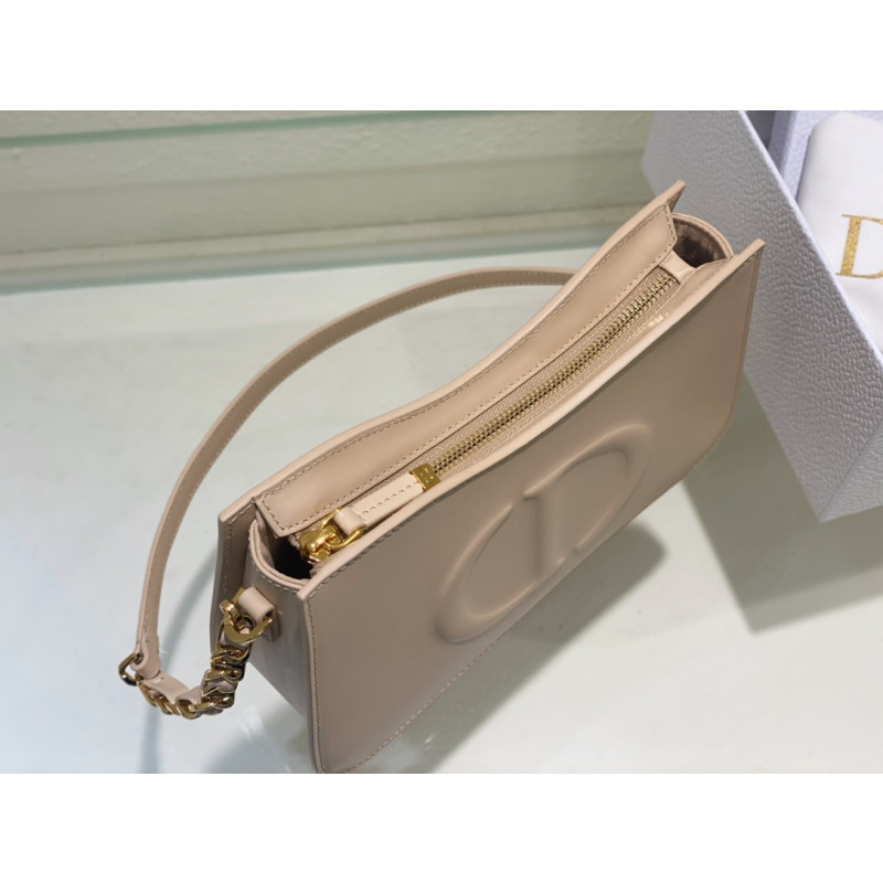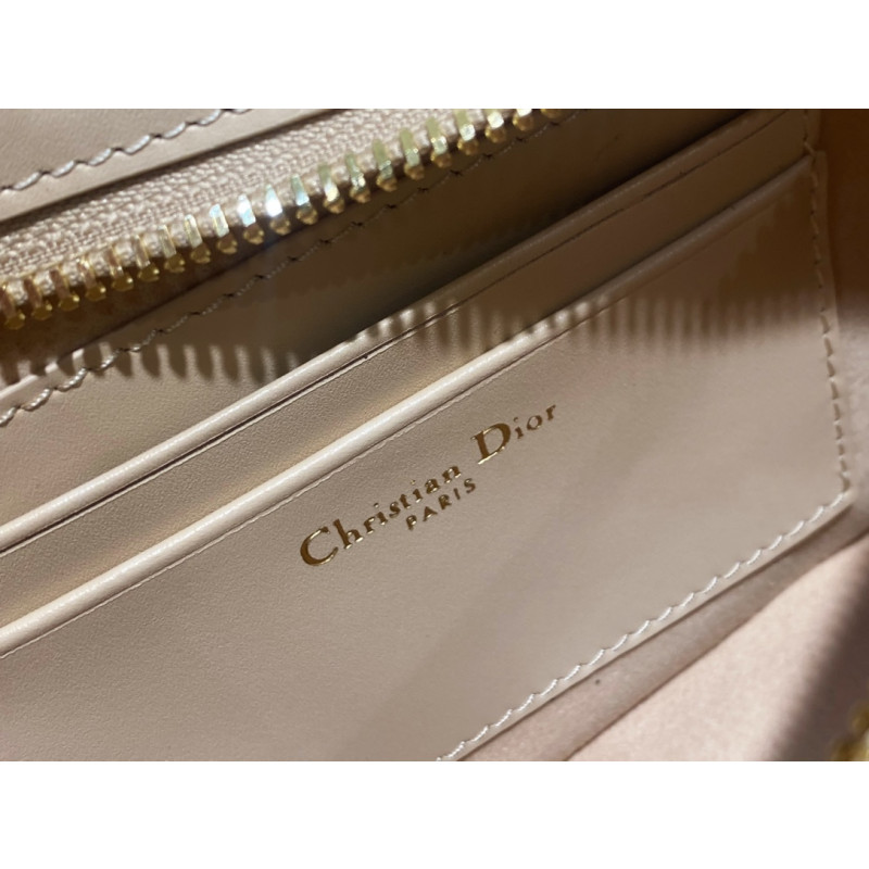 The front is adorned with the distinctive CD logo, showcasing Dior's exquisite craftsmanship. Elegant and charming, paired with a chain shoulder strap adorned with leather, it can be worn over the shoulder