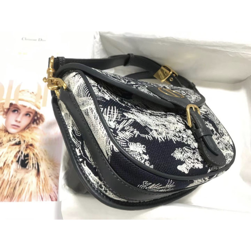 DetailEmbroidered Toile de Jouy motif and finished with antique gold-tone hardware. The detachable, adjustable shoulder strap with military buckle fits in the hand, over the shoulder or across the body.